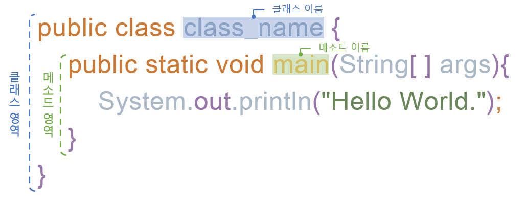 클래스와 매소드의 영역을 구분한다.