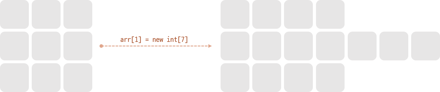 arr[1] = new int[7]; // 두 번째 줄의 배열을 교체하는 문장